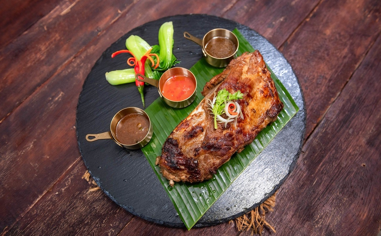 Oven roasted Marinated Beef Tenderloin, Carrot, Capsicum, Lemongrass, Bean sprout, Karffir lime leave, Served with Sweet & Sour Dressing
