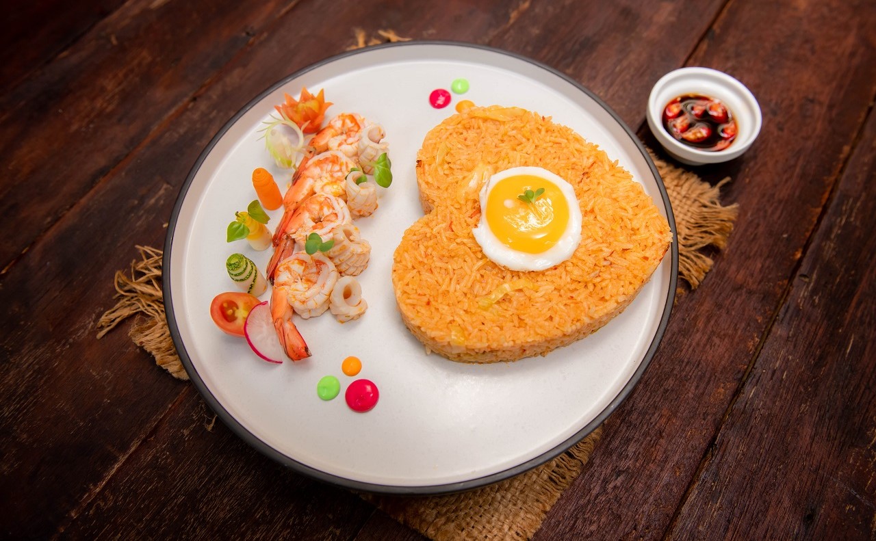 Golden temple fried rice with your choice Beef, Chicken, Pork, Seafood, Combined with mixed vegetables, Accompanied of fried eggs and soya sauce , chili,