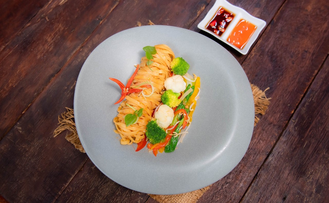 Your Choice of Yellow or Plat Rice Noodle Cooked with Julienne Vegetables and Bean Sprout Served with Soya sauce, Tomato Ketchup and Chili Sauce.