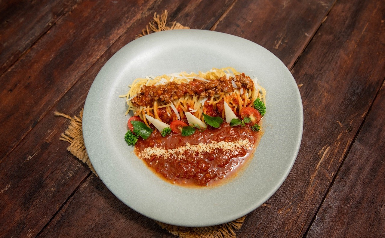 Tomato Sauce Grated Mozzarella Cheese with Stir-fried Minced Chicken.