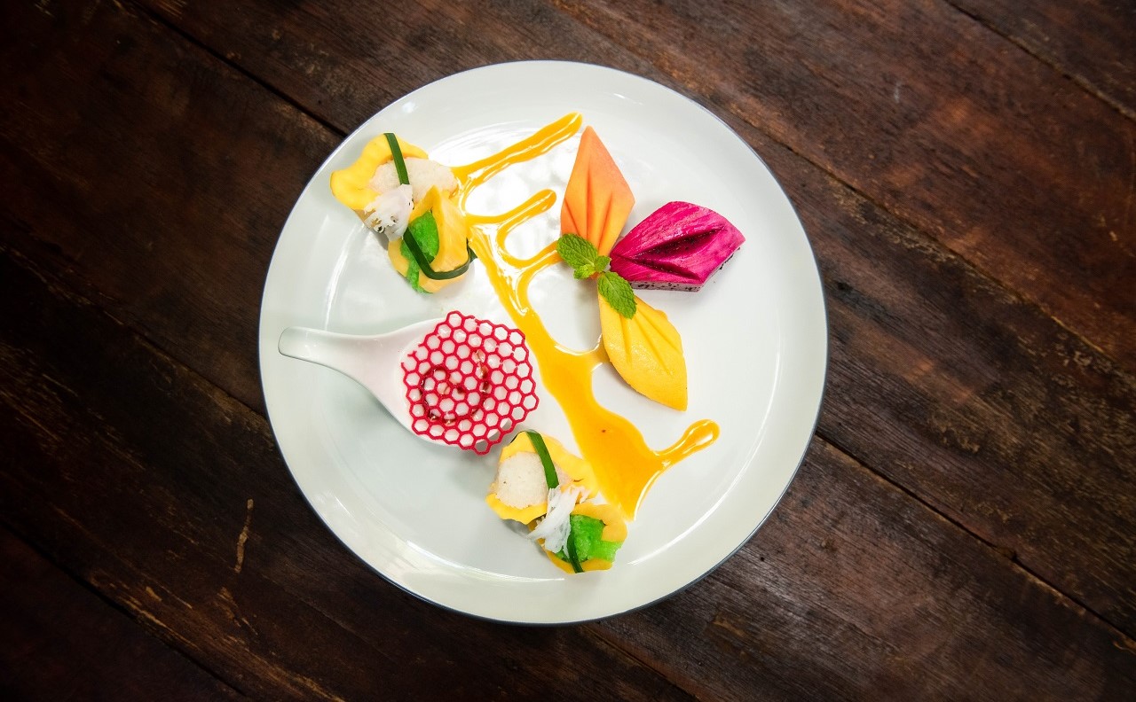 Banana Blossom Salad, Smoked Duck Breast, Carrot, Capsicum, Mixed Fresh Herbs With a Tossed Peanut and Khmer Dressing